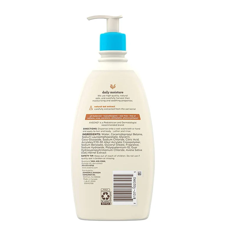 Gently cleanse your baby’s skin and hair with Aveeno Baby Daily Moisture 2-in-1 Bath Wash & Shampoo, which has a nourishing formula that gently cleanses without drying. For babies with sensitive skin, this tear-free formula is safe to use on baby’s delicate skin and hair.