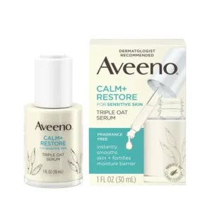 Instantly soothe skin while fortifying its moisture barrier with Aveeno Calm + Restore Triple Oat Serum. Designed for dry, sensitive skin, this gentle facial serum from a dermatologist-recommended skincare brand helps skin look and feel healthier. The hydrating face serum absorbs quickly and leaves skin feeling soothed and hydrated after just one use. In fact, 92% of testers agreed that after applying the serum, their skin felt instantly smooth.