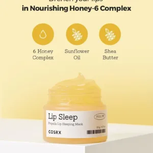 Lip sleeping mask that not only hydrates the surface of the lips but also improves its fundamental health by infusing honey extract and 5 honey-derived ingredients into the skin.