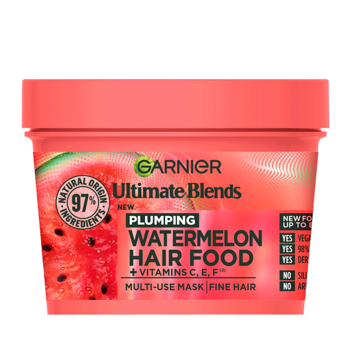 Hangry, Fine Hair? Dig into our Garnier Ultimate Blends Plumping Hair Food Watermelon Hair Mask Treatment to leave hair looking boosted and feeling plumped. It’s intensely hydrating formula and melting texture instantly absorbs into hair with no weigh down.