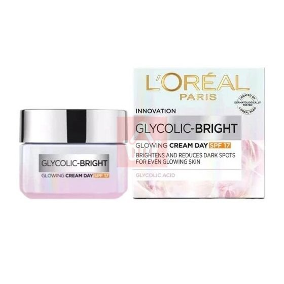 Unlock radiant, glowing complexion with the L’Oréal Paris Glycolic Bright Day Cream SPF17 – your ultimate skincare companion. The innovative day cream is infused with the power of glycolic acid to gently exfoliate and renew skin texture, revealing a smoother and brighter appearance. The glycolic acid cream effectively works to reduce dark spots and give your skin a brighter experience by penetrating deep into the skin and leaving it feeling hydrated. Combined with SPF 17, the L’Oréal Paris Glycolic Bright day cream provides optimal sun protection, guarding against harmful UV rays and preventing future damage. Further, this cream is super lightweight and dermatologically tested.