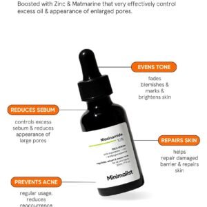 A daily serum formulated with pure Vitamin B3 (Niacinamide) and Matmarine. Niacinamide reduces the sebum level of the skin, improves the barrier & evens our skin tone. Matmarine is a perfect biotechnological ingredient to reduce excess sebum, shine, pores & spots.