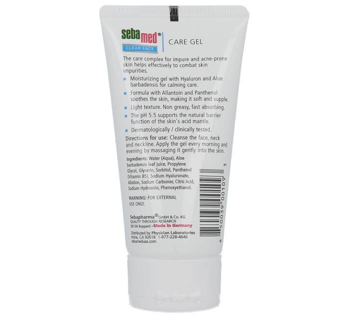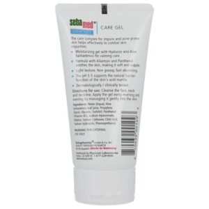 Get rid of pimples with the Sebamed Clear Face Care Gel. Our Clear Face Care Gel targets your breakouts, helping to heal your acne without damaging or drying out your skin. Specially formulated to balance out your skin’s pH level, it hydrates and moisturizes your facial skin while protecting it against bacteria. Use it along with the rest of our Clear Face line to enjoy a total face care regiment.Sebamed Clear Face Care Gel is the ideal basic dermatological care product for dealing with pimples, blackheads, and blemishes. Active moisturizing factors such as hyaluronic acid and natural aloe barbadensis give the skin plenty of moisture. Precious allantoin and panthenol soothe and care for the skin, making it soft and supple.